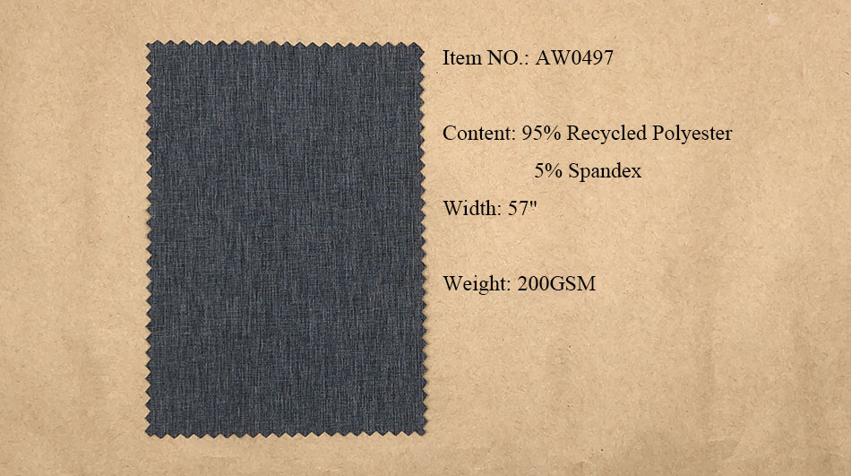 Recycled Polyester Fabrics: Pongee, Ribstop, Twill, Cationic, Serge, Mesh, Trucker Mesh, Dobby, Pique, Sheeting, Jersey, Interlock.